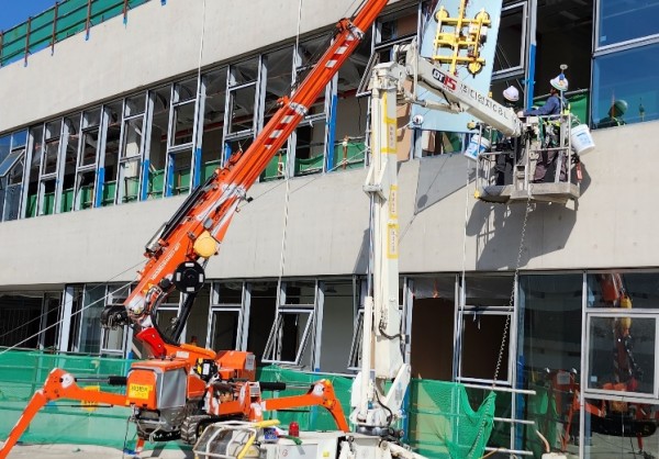 거미크레인 서울 호텔 로비 유리 터널 작업