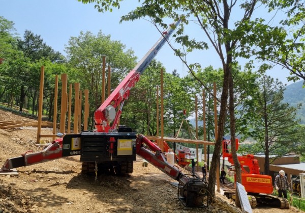 거미크레인 4톤 유니크와 굴절식크레인 DT25…