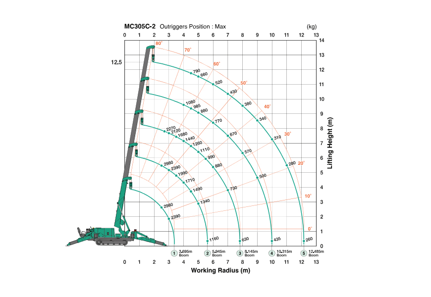 3.695m/5.945m boom 8.145m boom 10.315m boom 12.485m boom